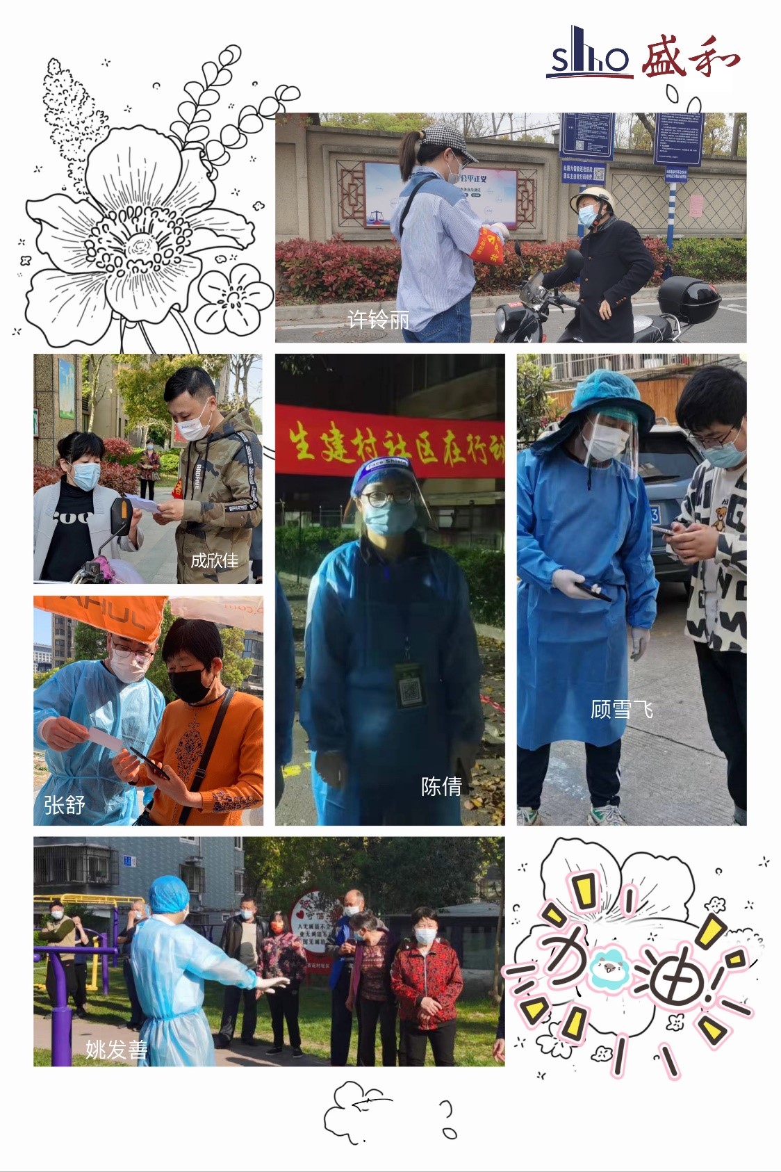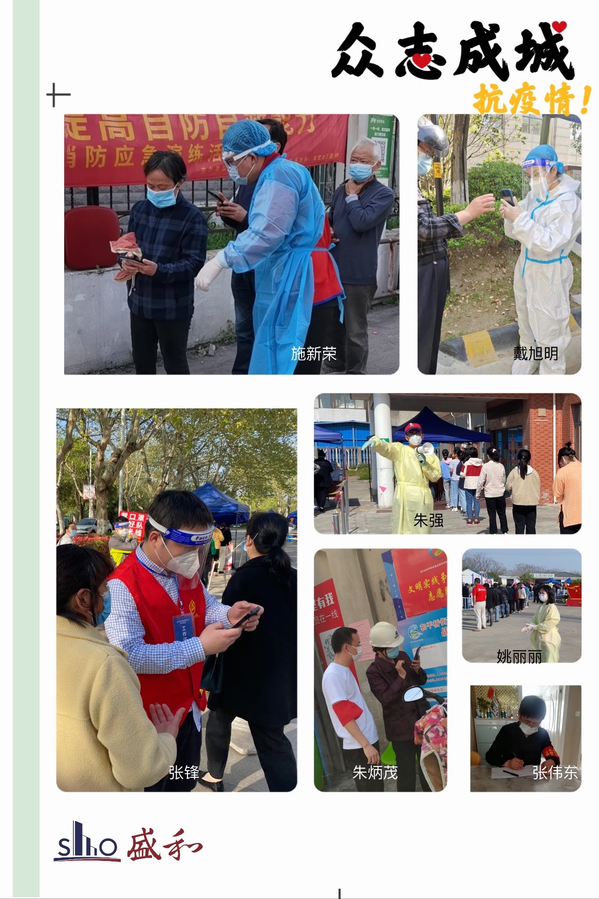 “我們公司72個人,都在社區幫忙做志愿者,也沒有什么特別想說的,就是希望南通疫情快點過去,大家能夠重返以前美好的生活。”這是公司綜合管理部員工楊園園在紅星社區核酸檢測點做志愿服務時接受NTTV采訪所說的話?!獩]有報酬,沒有獎勵,沒有“研究”和“商量”,他們自覺自愿。他們是黨員,是群眾;是領導,是員工;是兒女,是父母;他們是盛和房產志愿者。